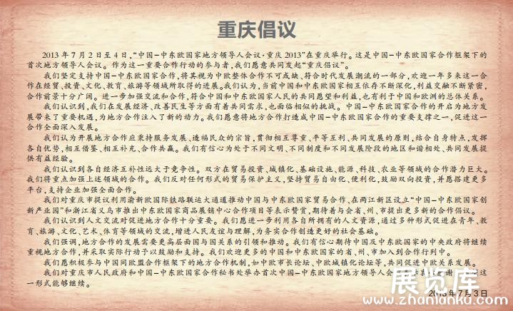 2013年7月2日至4日,“中国-中东欧国家地方领导人会议·重庆2013”在重庆举行。这是中国-中东欧国家合作框架下的首次地方领导人会议。作为这一重要合作行动的参与者,我们愿意共同发起“重庆倡议”。