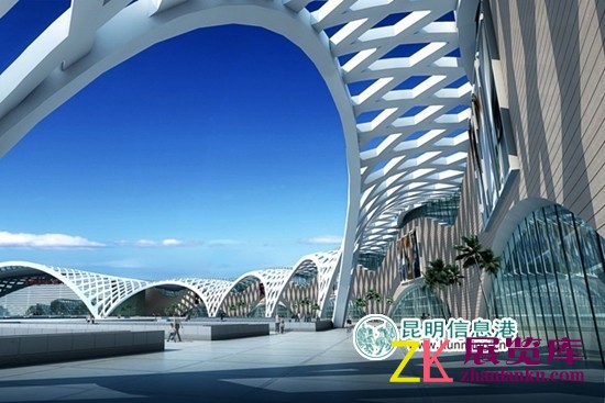昆明滇池国际会展中心是云南省、昆明市确定的重点建设项目,是云南省继长水国际机场之后又一标志性工程,项目主体结构分为13个展览馆,展览馆外观极似“孔雀翎羽”,远远望去,整个会展中心呈现出“孔雀开屏”的绚丽奇景,美艳动人。