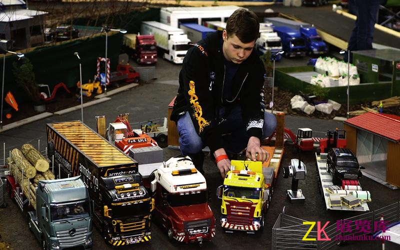 1月17日,在英国伦敦亚历山大宫,参展人员码放遥控卡车。1月16至18日,伦敦模型工程展览会在伦敦亚历山大宫举行,吸引50多家来自英国及海外的模 型俱乐部和社团参展。展览内容涵盖传统机械模型、蒸汽火车模型、牵引机车、工具包,以及现代配件、遥控飞机、卡车、玩具等。