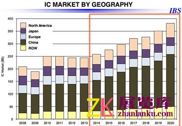 国际商业战略公司(IBS)的预测指出,2013年之后,从2014年到2020年,中国半导体市场将迎来七年高速增长,市场规模将从目前的1110亿美元暴涨到2080亿美元!这样的增速远超世界同行。