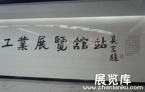 在沈阳地铁二号线车站内,有一个站名是莫言亲笔题写的——工业展览馆站。地铁部门的相关负责人介绍说,沈阳地铁二号线各车站的一大特色,就是站名均请来文学家题写。这些为沈阳地铁车站题写站名的文化名人当中,有作家、剧作家、诗人,有的擅长小说创作,有的擅长纪实文学。车站建设最初,沈阳地铁部门便列出包括莫言、王蒙、二月河、梁晓声在内的我国多位文化名人的名单,打算逐一邀请他们为沈阳地铁二号线车站题写站名。