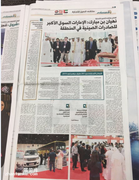 2015年阿拉伯贸易周举办的同一周,恰逢阿联酋王储访华。此次展会受到了沙迦投资局、哈伊马角自由区等阿方机构的赞助支持,开幕式上人潮涌动,阿联酋谢赫纳哈扬.本.穆巴拉克.阿勒纳哈扬亲王、阿联酋经济部贸易及投资部部长mohanmmed al zaabi、阿联酋海外投资部助理副部长Juma Al Kait、中国驻阿联酋大使常华、中国驻阿联酋经商处贺松参赞、中国贸促会驻海湾代表首代张喜静、阿联酋中国国际商会会长王耸参加了开幕式,常华大使与纳哈扬亲王共同为“中国贸易周”剪彩并作精彩开幕致辞。阿方媒体踊跃报道,中国方面也非常重视,除了央视,新华社等媒体报道外,外交部、国务院新闻办公室、中国驻阿联酋使领馆等也特别例外的对我们ctw展会进行了报道。