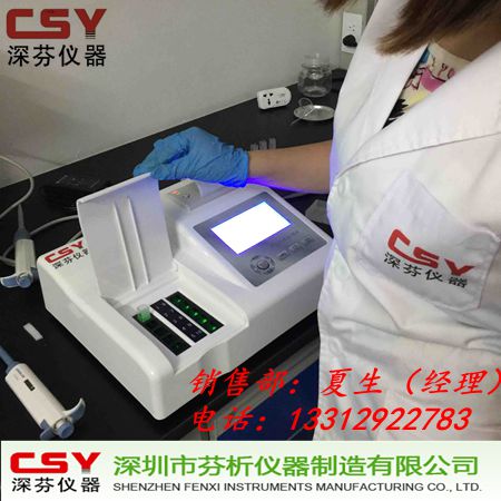 苏丹红分析仪仪器原理:被检样品中的相关指标成分与显色剂在一定的条件下发生特异性反应,可生成不同颜色深度的产物,这些产物对不同波长可见光会产生有选择性吸收,颜色的深浅即吸光度的高低与样品中该指标成分的浓度成相关性,并在适当的浓度范围内服从朗伯—比尔定律。因此检测的吸光度值经仪器内置的标准曲线软件自动计算可得出样品中该指标成分的准确浓度及是否超标的结果。