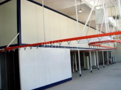喷漆流水线主要配套设备:悬挂链输送设备,不锈钢喷淋清洗剂,脱水烘干炉,底漆喷漆房(干式、水帘),流平段,面漆喷漆房(干式、水帘),流平段,自动喷涂系统,升降机,燃烧室,固化烘干炉,废气处理设备,废水处理设备等。
